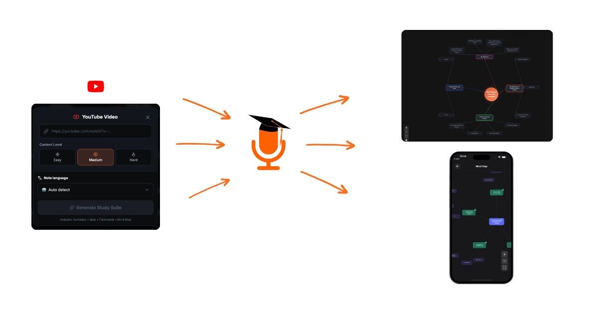 Video ist ein großartiges Medium, aber schwer zu überfliegen. YouTube zu Mindmap gibt Ihnen die Fähigkeit, Videos zu scannen. Sehen Sie die Struktur der Vorlesung oder des Tutorials auf einen Blick.
