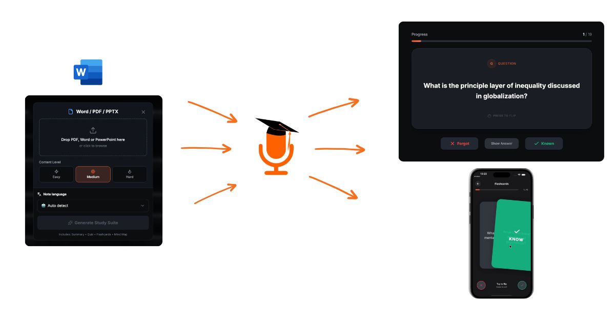 La lectura pasiva a menudo conduce a una baja retención. Al transformar tus documentos Word en flashcards, participas en el recuerdo activo, lo que mejora significativamente la memoria a largo plazo.